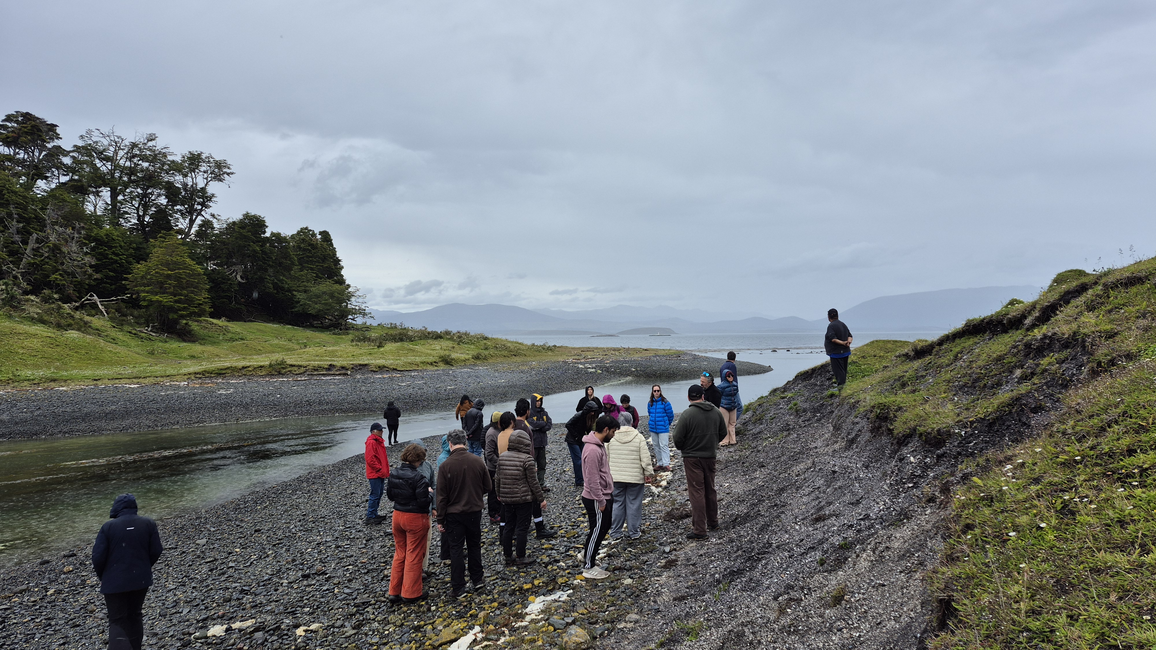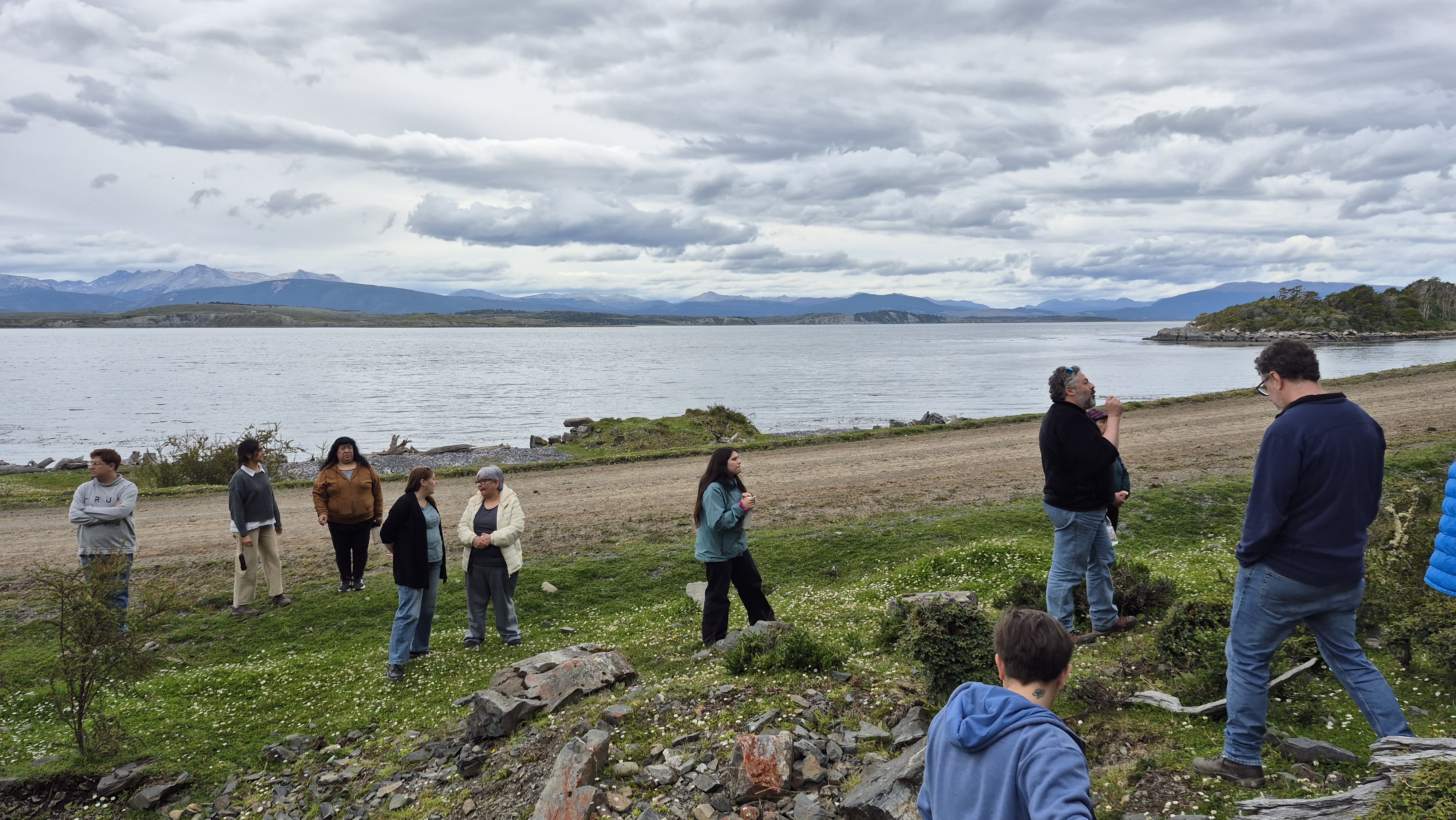 Dentro de las actividades, también se efectuó la presentación del libro Wata Čis. Cuento antiguo de la escritora yagan Cristina Zárraga, además de un recorrido por sitios de interés arqueológico y patrimonial de la costa sur del Onašaga, como conchales y corrales de pesca utilizados por el pueblo yagan. Esta visita estuvo guiada por los investigadores Jimena Torres y Manuel San Román. “El recorrido fue súper interesante ya que vimos en vivo y en directo los corrales de pesca, pero también los vimos asociados a los ciclos de las mareas. Eso también permite entender cómo estas estructuras funcionan y dependen mucho de los ciclos naturales, y eso creo que también nos acerca a cómo los yaganes y también otros grupos han podido observar y entender la naturaleza, el comportamiento de los peces, la biodiversidad en general y han podido tomar estas soluciones tecnológicas para aprovechar estos recursos alimenticios”, explica la arqueóloga de la Universidad de Magallanes.